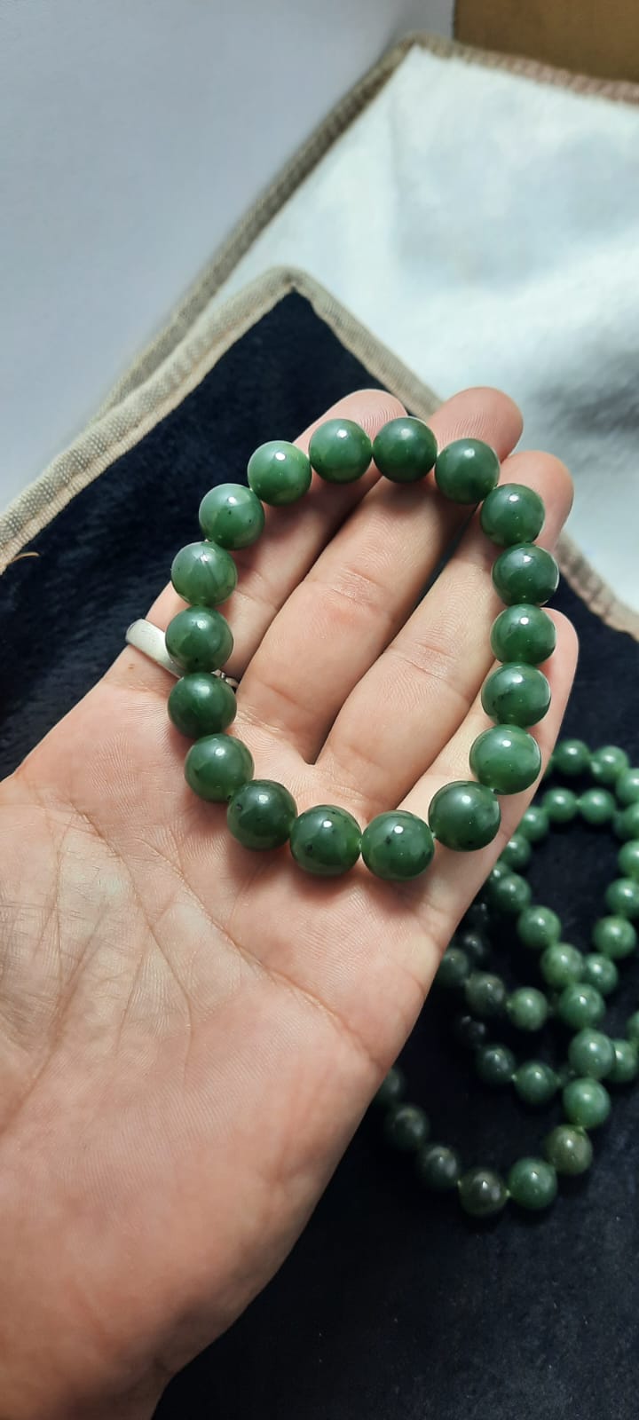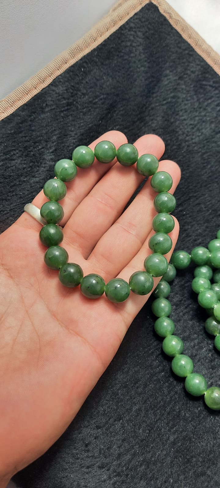 You are watching a genuine Nephrite Jade bracelet made with 100% natural stones. The beads are round and strung on a top quality elastic. They measures 10mm in diameter. We make all the bracelets ourselves, here in pakistan